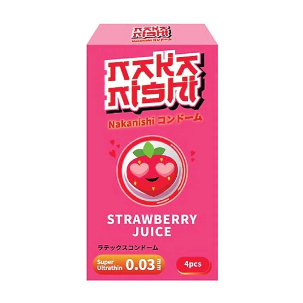 Bao cao su Nakanishi nổi bật với độ mỏng chỉ 0.03mm, cho khả năng truyền nhiệt nhanh, giúp mọi va chạm đều trở nên tự nhiên và ngọt ngào hơn. Công nghệ tiên tiến Viaskin từ Nhật Bản giúp nâng cao trải nghiệm, làm tăng cảm xúc và sự thỏa mãn khi gần gũi. Hương dâu quyến rũ có tác dụng kích thích giác quan, đem lại sự mới mẻ và lôi cuốn trong từng phút giây.