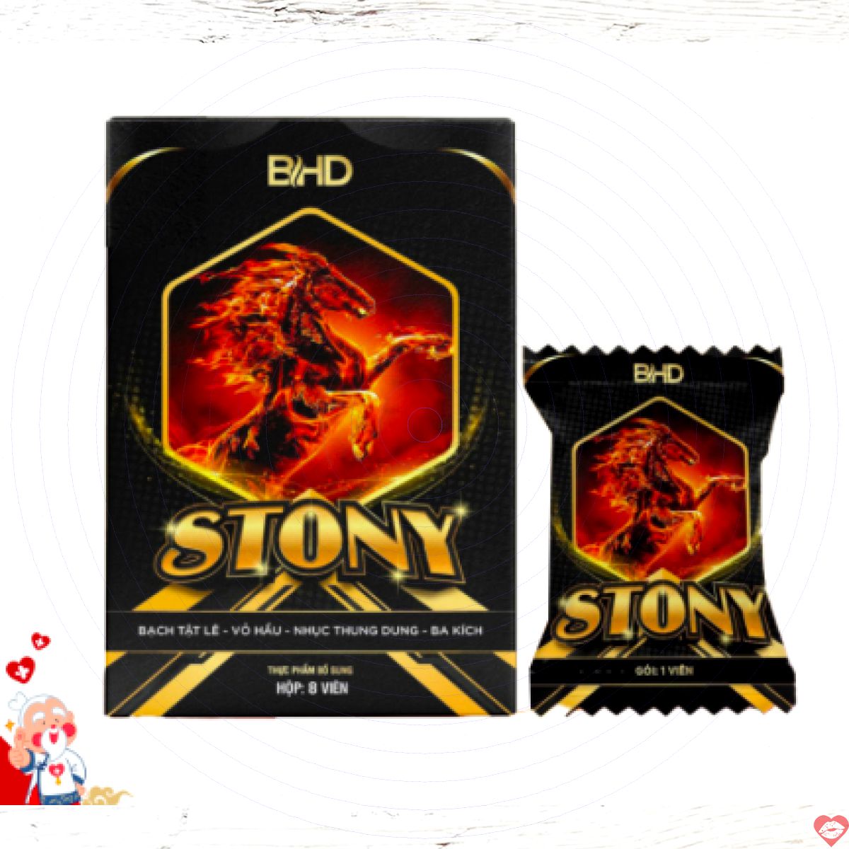 Kẹo Stony là sản phẩm độc đáo hỗ trợ tăng cường sức khỏe sinh lý cho cả nam và nữ, được sản xuất tại Việt Nam bởi Công ty TNHH Thương Mại và Dịch Vụ Ngọc Nữ Protect Health. Với quy trình công nghệ hiện đại, đạt chuẩn GMP của WHO, Stony cam kết chất lượng vượt trội. Sản phẩm giúp đánh bay tình trạng rối loạn cương dương, xuất tinh sớm, đồng thời kích thích ham muốn và kéo dài cuộc vui trọn vẹn hơn bao giờ hết.